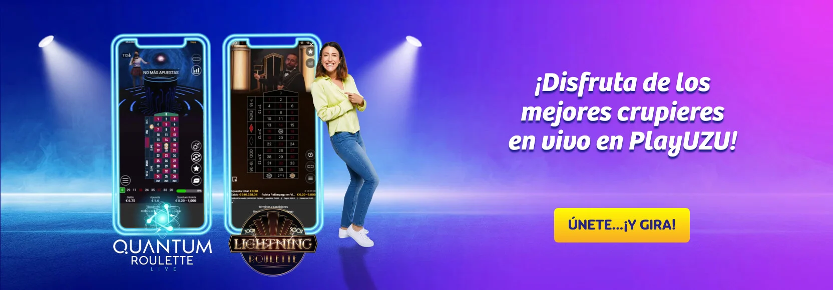 ¡Disfruta del Casino en Vivo UZU 24/7! Elige tu ruleta favorita y no te olvides de dar una vuelta por las exclusivos juegos en vivo UZU, European Roulette Pro y French Roulette Pro Special. Nuestros magníficos anfitriones están deseando conocerte…